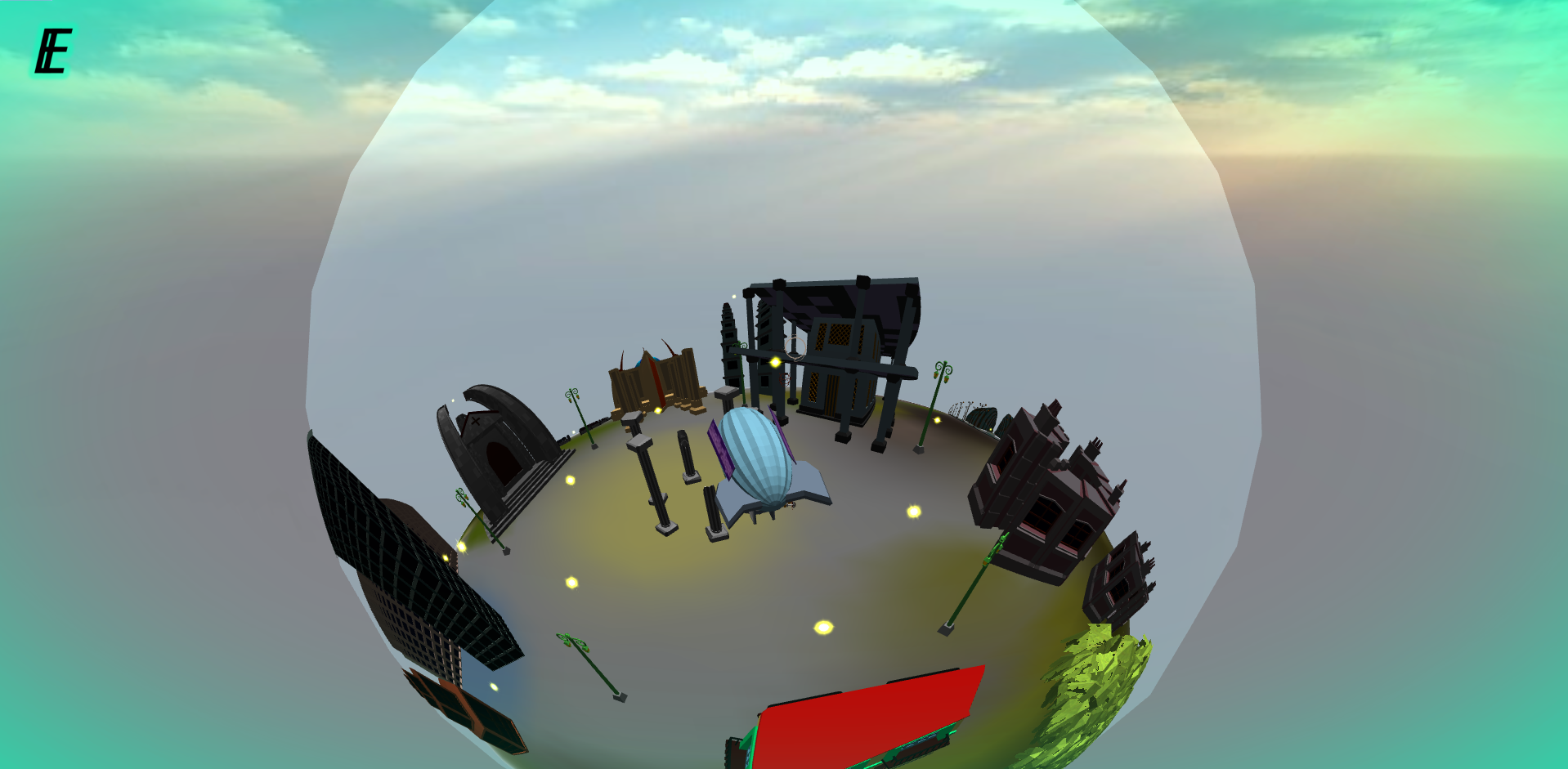 Y así, con todo esto, creamos Hiperbolia y la podíamos observar desde diferentes puntos, alturas, cámaras, etcétera. Queríamos crear interiores para los edificios, pero siendo sinceros, se nos acabó el tiempo.