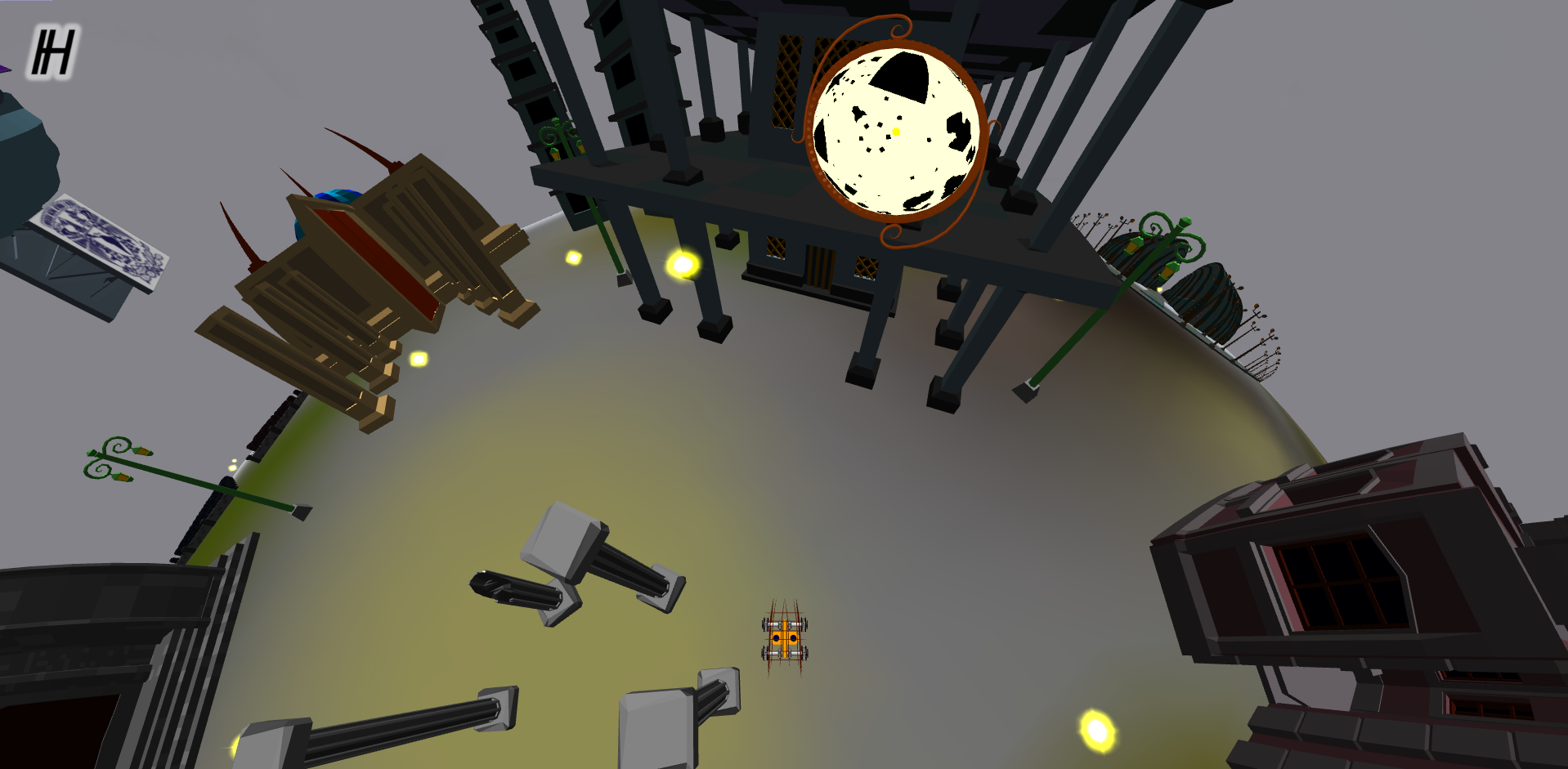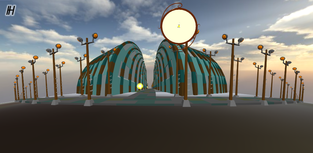 con la cámara euclidiana y la hiperbólica viendo desde el origen, aparece el icono de H.